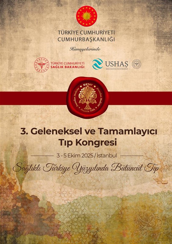 Bilimsel temellere dayalı geleneksel ve tamamlayıcı tıp uygulamalarını, sağlık profesyonellerine yenilikçi tedavi modelleri ve vizyoner yaklaşımlarla sunmayı hedefleyen; geleneksel ve tamamlayıcı tıp (GETAT) alanında uzman sağlık profesyonelleri, akademisyenler ve sektör temsilcilerini bir araya getirecek olan “T.C. Sağlık Bakanlığı 3. Geleneksel ve Tamamlayıcı Tıp Kongresi” 3–5 Ekim 2025 tarihleri arasında İstanbul’da gerçekleştirilecektir.