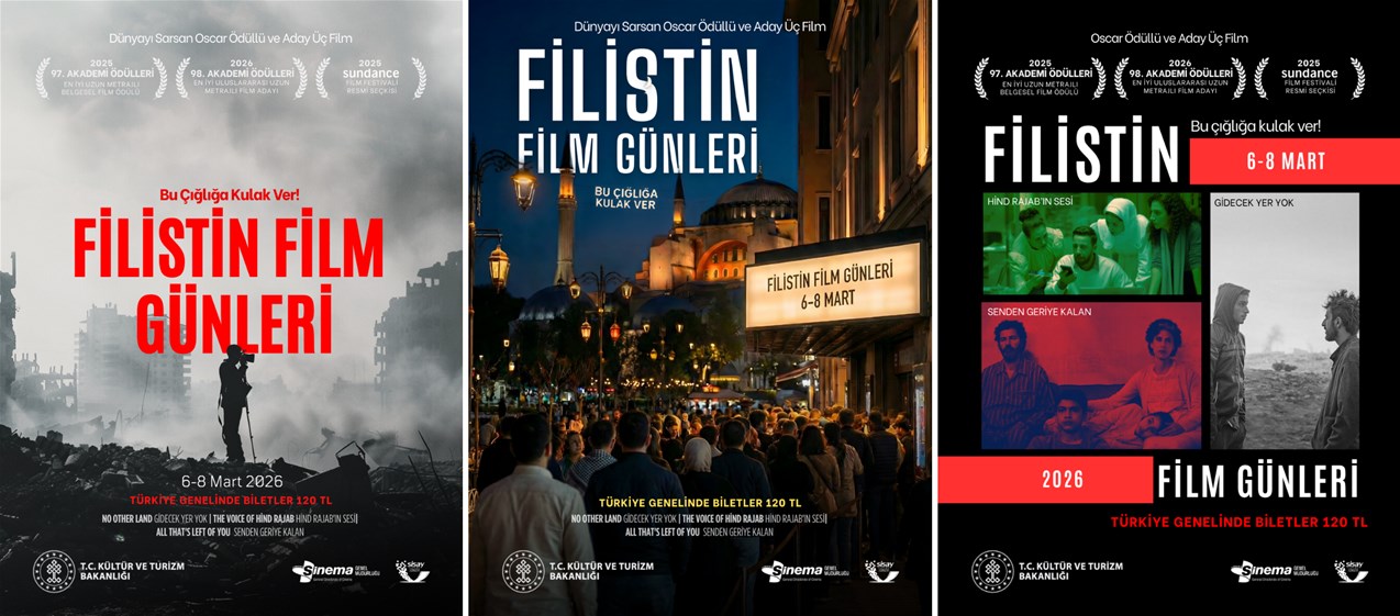 T.C. Kültür ve Turizm Bakanlığı Sinema Genel Müdürlüğü ile Sinema Salonları Yatırımcıları Derneği (SİSAY) iş birliğinde düzenlenen *"Filistin Film Günleri"*, 6–8 Mart 2026 tarihleri arasında Türkiye genelinde eş zamanlı olarak gerçekleştirilecektir.